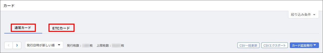 - 「カード」画面で「通常カード」タブまたは「ETCカード」タブをクリックします。