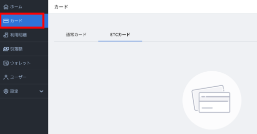 2. 「カード」画面で「ETCカード」タブをクリックします。