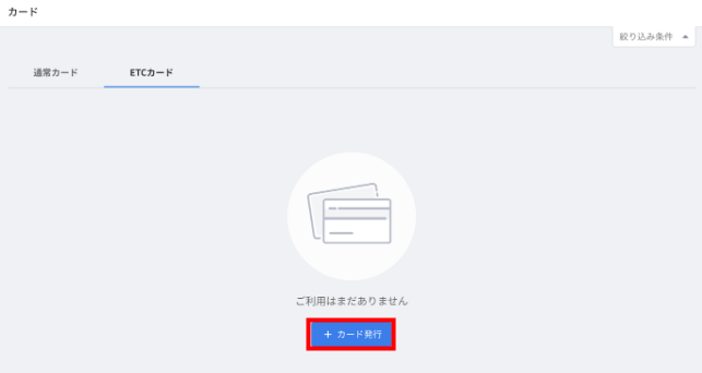 3. 「+カード発行」をクリックします。