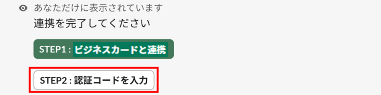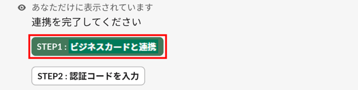 - 「連携を完了してください」と表示されたことを確認し、「STEP1:ビジネスカードと連携」をクリックします。