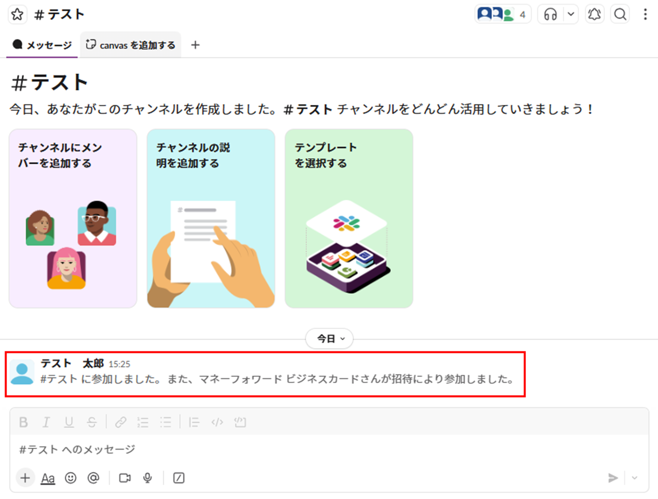- 指定した「Slackチャンネル」でビジネスカードが追加されたことを確認します。