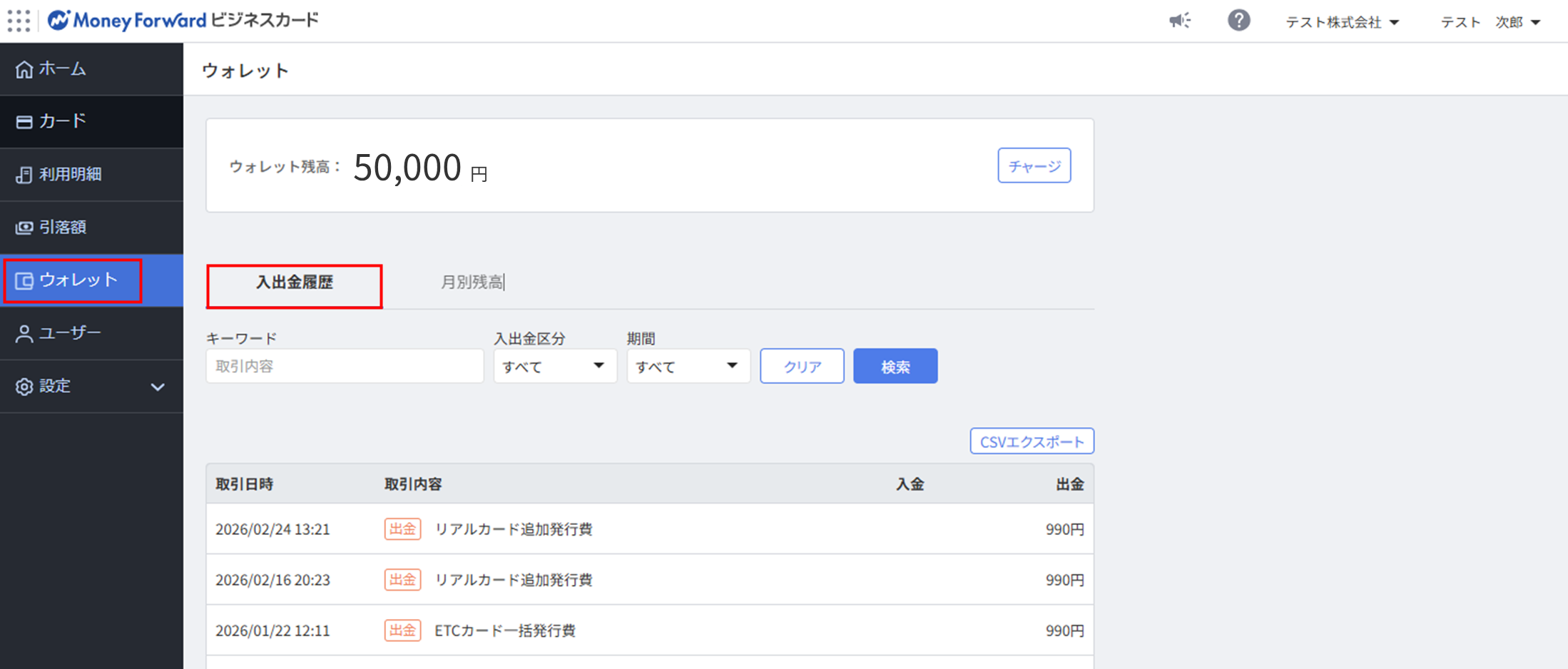 入出金履歴のエクスポート