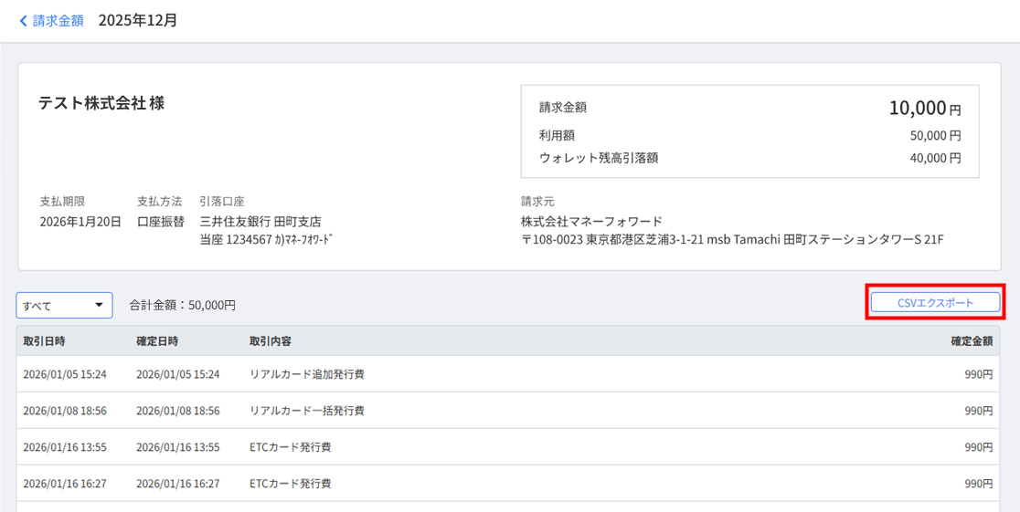 このガイドでは、マネーフォワード ビジネスカードの利用明細・入出金履歴・請求明細をCSVエクスポートする方法についてご説明します。
