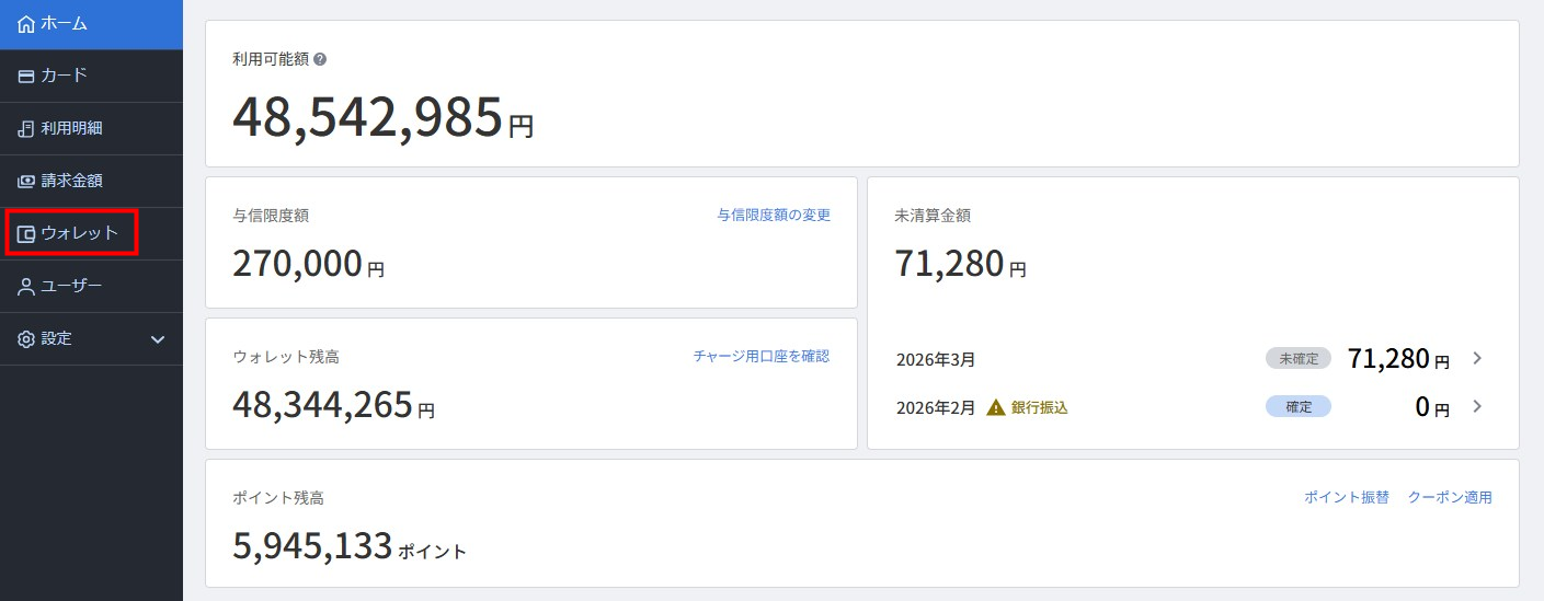 - 画面右側の「月末時点のウォレット残高」を確認します。