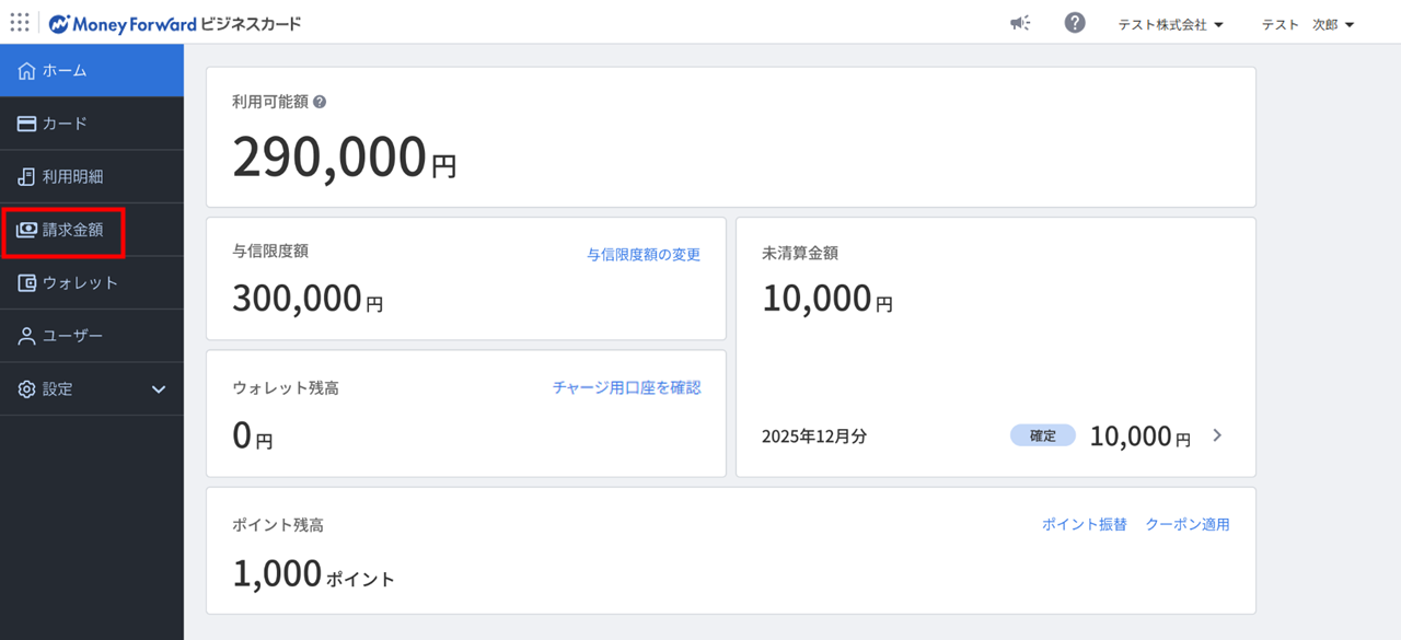 - 左メニューの「請求金額」をクリックします。