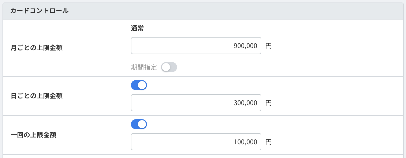 このたび、各カードの「カードコントロール」において、「1日あたりの利用上限額」を設定できるようになりましたので、お知らせいたします。