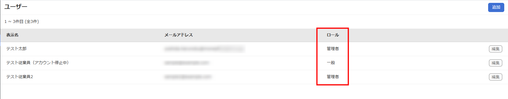 - 万が一のため、「管理者」ロールのユーザーは2名以上登録することを推奨しています。