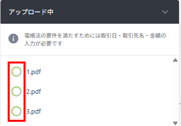- 読み取り可能なファイルは、「書類種別」が「領収書」または「請求書」のファイルのみです。