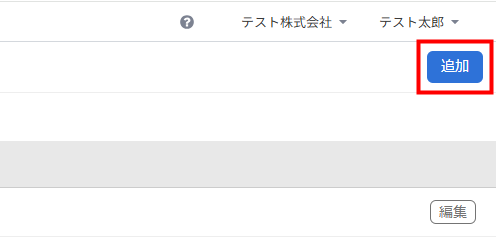 - 「ユーザー」画面右上の「追加」ボタンをクリックします。