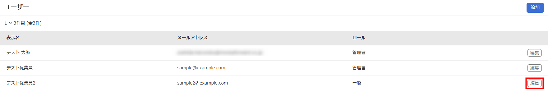 - 「ユーザー」画面で編集するユーザーの「編集」ボタンをクリックします。