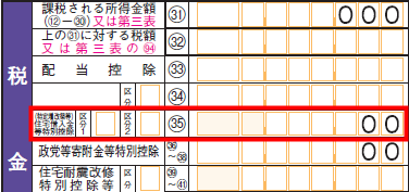 - 「(特定増改築等)住宅借入金等特別控除額」欄に入力した金額が、確定申告書第一表の「(35)(特定増改築等)住宅借入金等特別控除」に反映されたことを確認します。