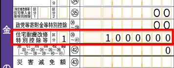 - 入力した金額が確定申告書第一表の「(39)~(41)住宅耐震改修特別控除等」に反映されたことを確認します。