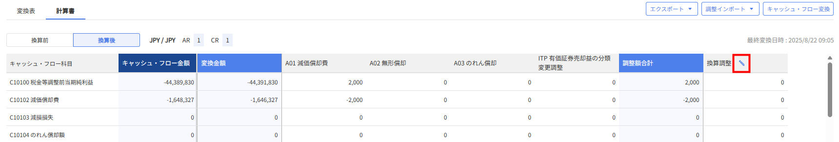 - 換算調整の右横にある鉛筆のアイコンをクリックします。