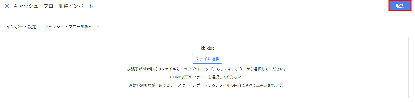 | 3 | キャッシュ・フロー調整種別の合計は0にしてください。 | 調整金額は調整種別内で合計が「0」になるようにインポートしてください。 |