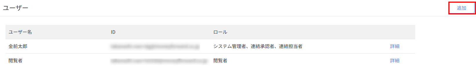 ユーザーを追加するためには、事前に「マネーフォワード クラウドの管理コンソール」でユーザーを登録する必要があります。