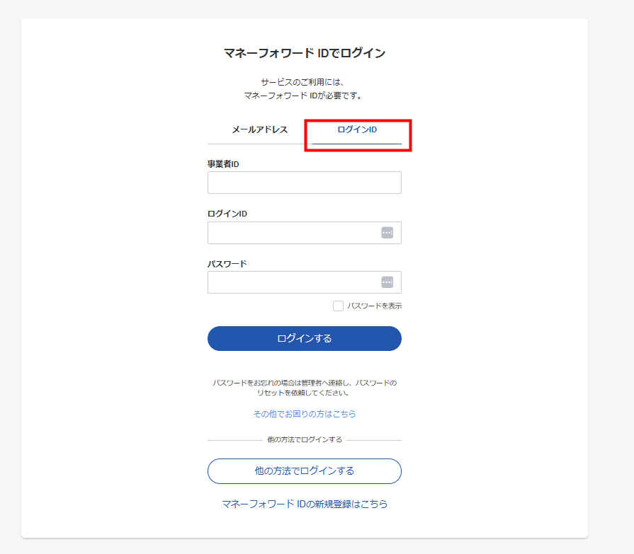 「マネーフォワード IDでログイン」画面に「ログインID」タブを追加
