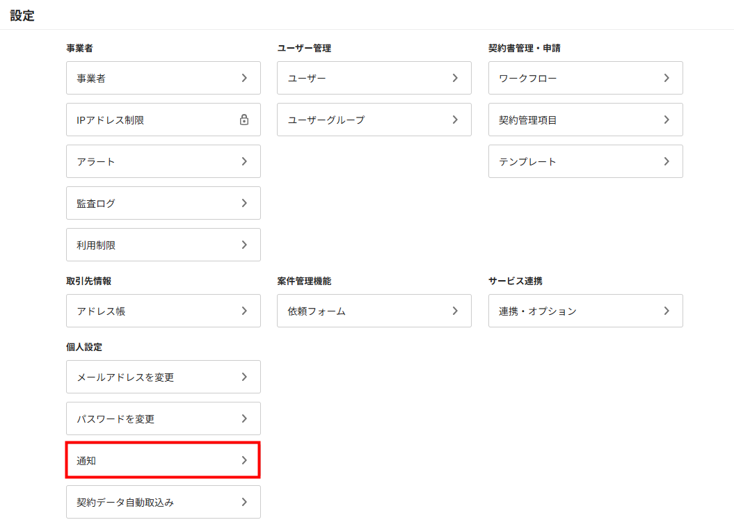 - 「設定」画面で「通知」をクリックします。
