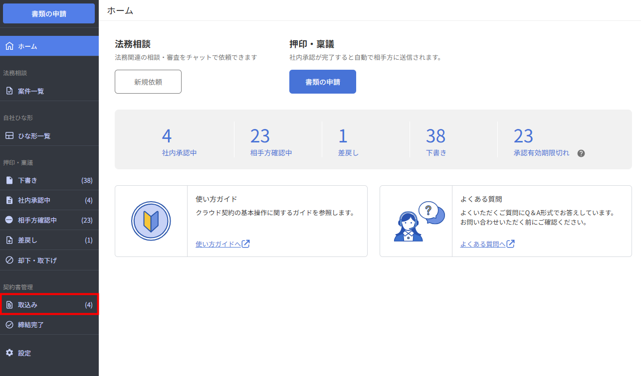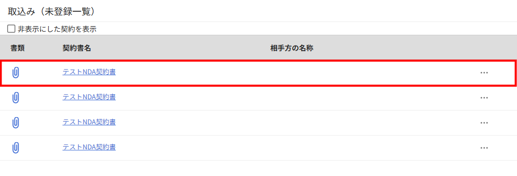 - 「取込み」画面で取り込む契約書を選択します。