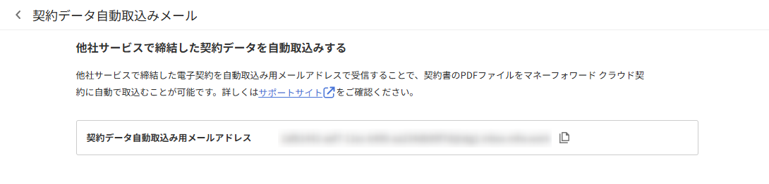なお、「契約データ自動取込み用メールアドレス」は「 *****@inbox.moneyforward.com」です。