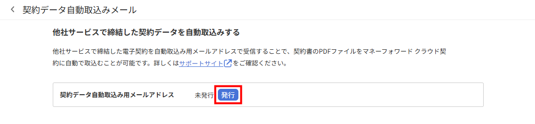 - 「契約データ自動取込みメール」画面で「発行」をクリックします。