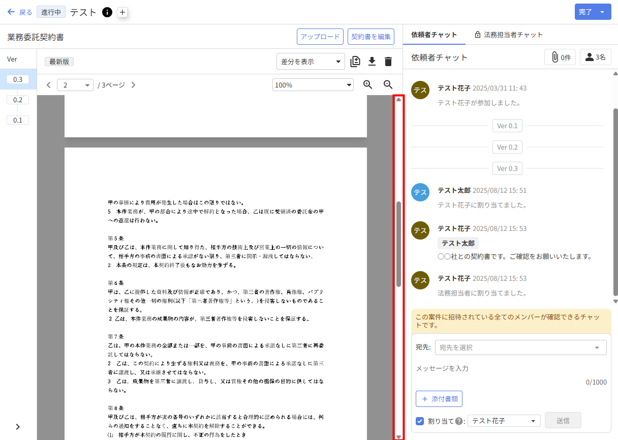 このたび、「法務相談」画面の契約書をスクロールでページ切り替えできるようになりましたので、お知らせします。