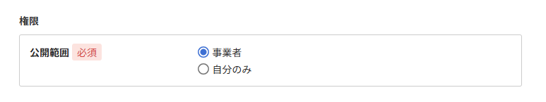必要に応じて、「公開範囲」を「事業者」に変更してご利用ください。