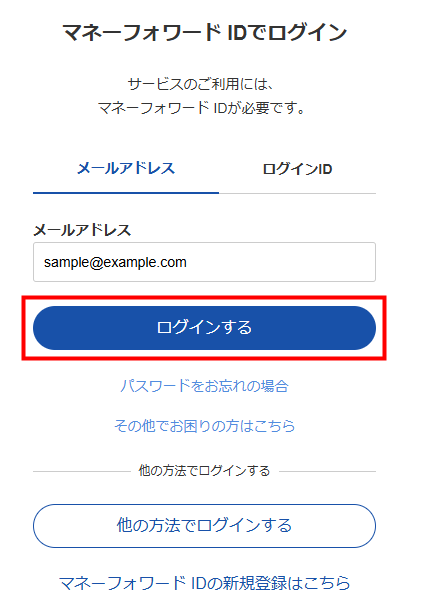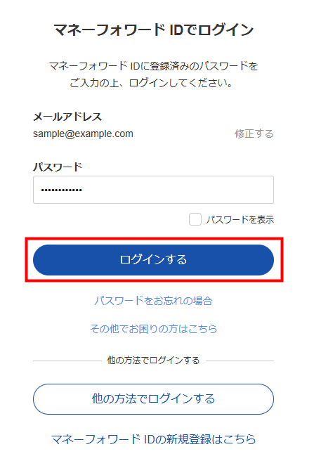 「マネーフォワード ID」に初めて登録するメールアドレスの場合は、初回ログイン時にパスワードの設定が必要です。