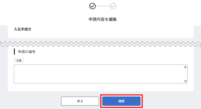 2. 「申請内容を編集」画面で各項目を入力して、「確認」をクリックします。