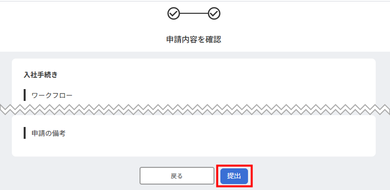 3. 「申請内容を確認」画面で内容を確認して、「提出」をクリックします。