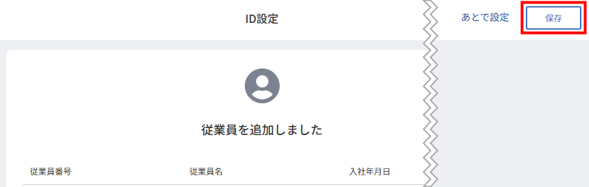 5. 「ID設定」画面に切り替わり、「従業員を追加しました」というメッセージが表示されたことを確認します。