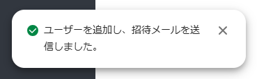 - 画面左下に「ユーザーを追加し、招待メールを送信しました。」というメッセージが表示されたことを確認します。