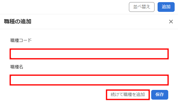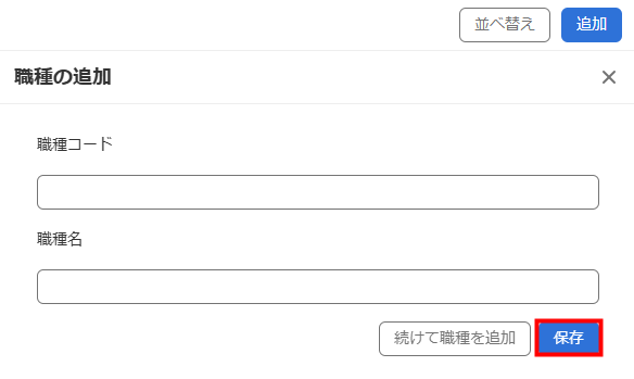2. 「職種の追加」画面で「職種コード」と「職種名」を入力します。