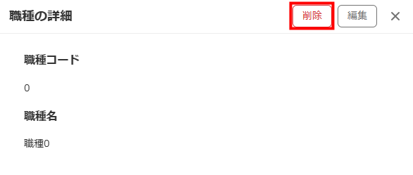 2. 「職種の詳細」画面で「削除」をクリックします。
