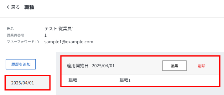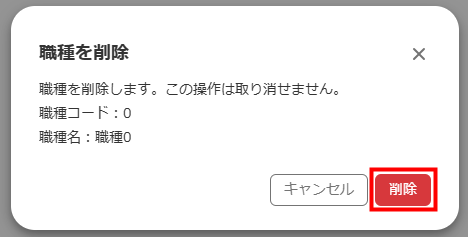 • 履歴を含めて従業員情報で割り当てている職種は削除できません。