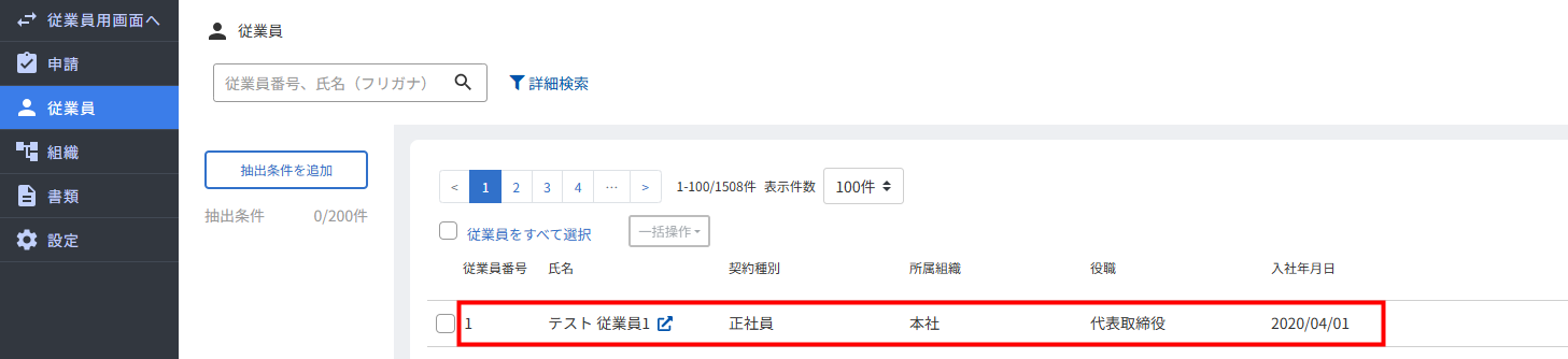 1. 左メニューの「従業員」を選択し、「従業員」画面で割り当てる従業員をクリックします。