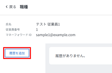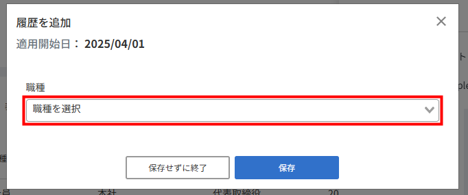 5. 職種の変更履歴の画面で「履歴を追加」画面で「職種を選択」をクリックし、プルダウンを開きます。