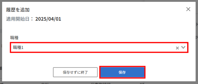 6. プルダウンから、作成した「職種」を選択し、「保存」をクリックします。