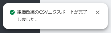 - 画面左下に「組織改編のCSVエクスポートが完了しました。」というメッセージが表示されたことを確認します。