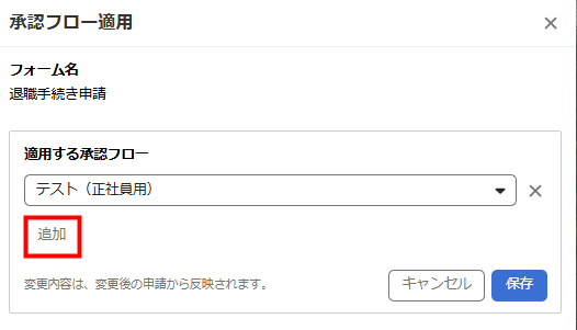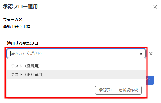 - 「適用する承認フロー」のプルダウンをクリックし、適用する承認フローを選択します。