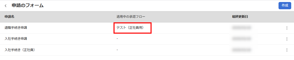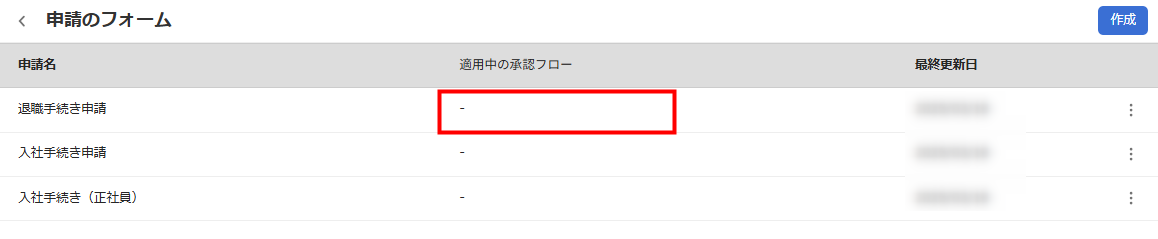 - 「申請のフォーム」画面で「適用中の承認フロー」が空欄になったことを確認します。