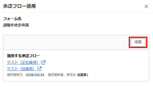 - 「承認フロー適用」画面で「編集」をクリックします。