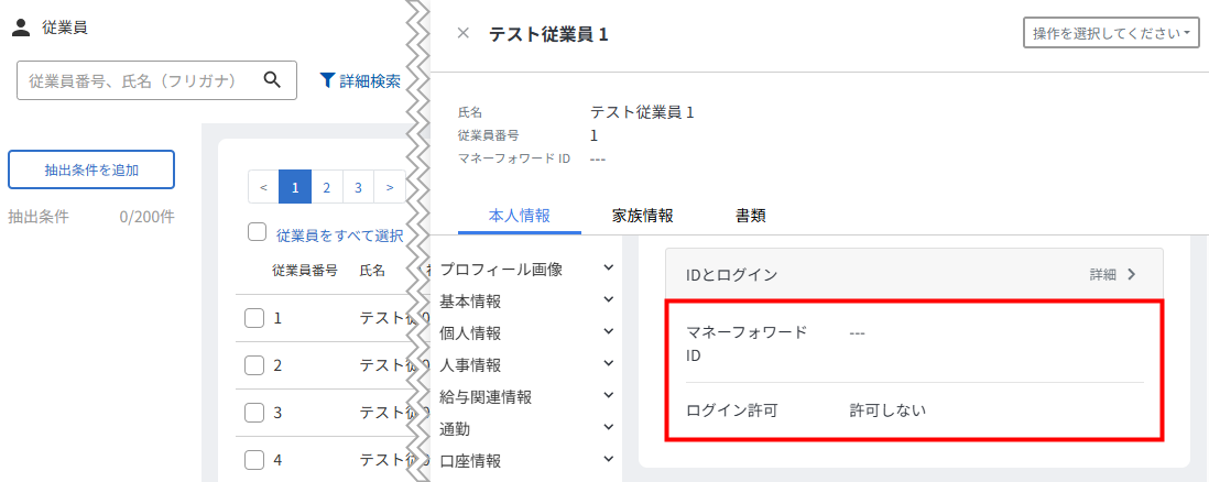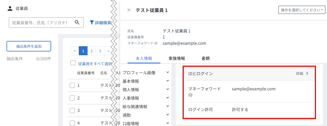 本仕様変更により、「ユーザー」画面でユーザーを削除しても、削除したユーザーに紐づく従業員の「マネーフォワード ID」は削除されず、「ログイン許可」は元の選択内容が維持されます。