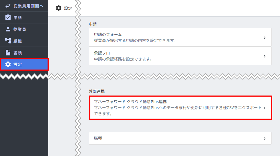 設定」画面に「マネーフォワード クラウド勤怠Plus連携」機能を追加しました。