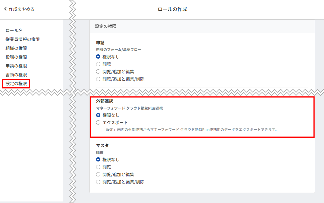 「外部連携」に関する権限の追加