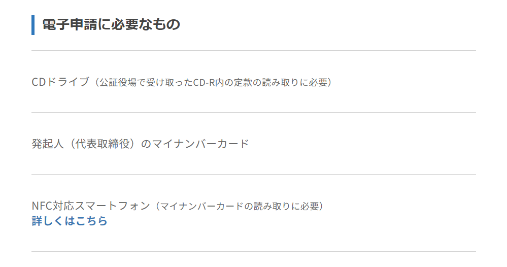 - 「電子申請に必要なもの」を確認し、電子申請に必要なものを準備します。