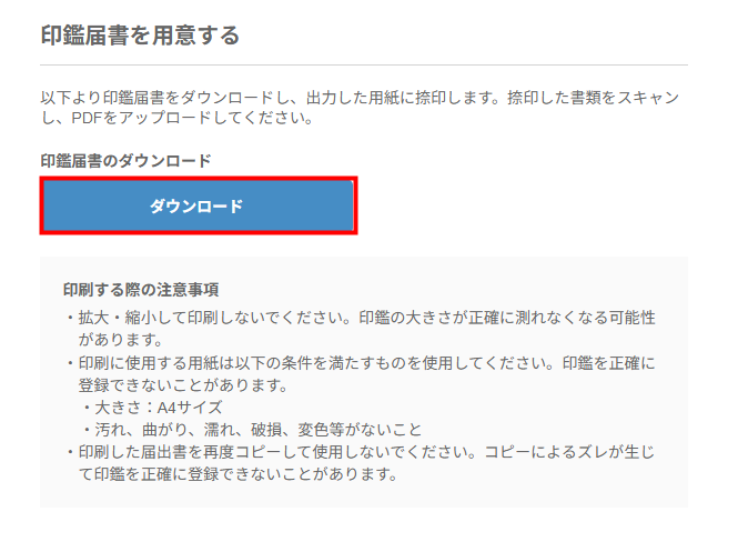 「印鑑登録」で「提出しない」を選択した場合、「ダウンロード」は表示されません。