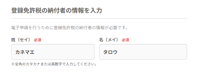 登録免許税の納付者の情報を入力