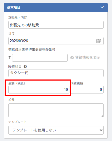 - 「領収書から登録」画面で「金額(税込)」に外貨金額を入力します。