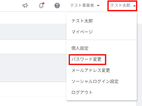 - マネーフォワード クラウド経費にログインして画面右上のアカウント名をクリックし、「パスワード変更」を選択します。