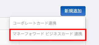 - 「新規追加」をクリックし、「マネーフォワード ビジネスカード」を選択します。